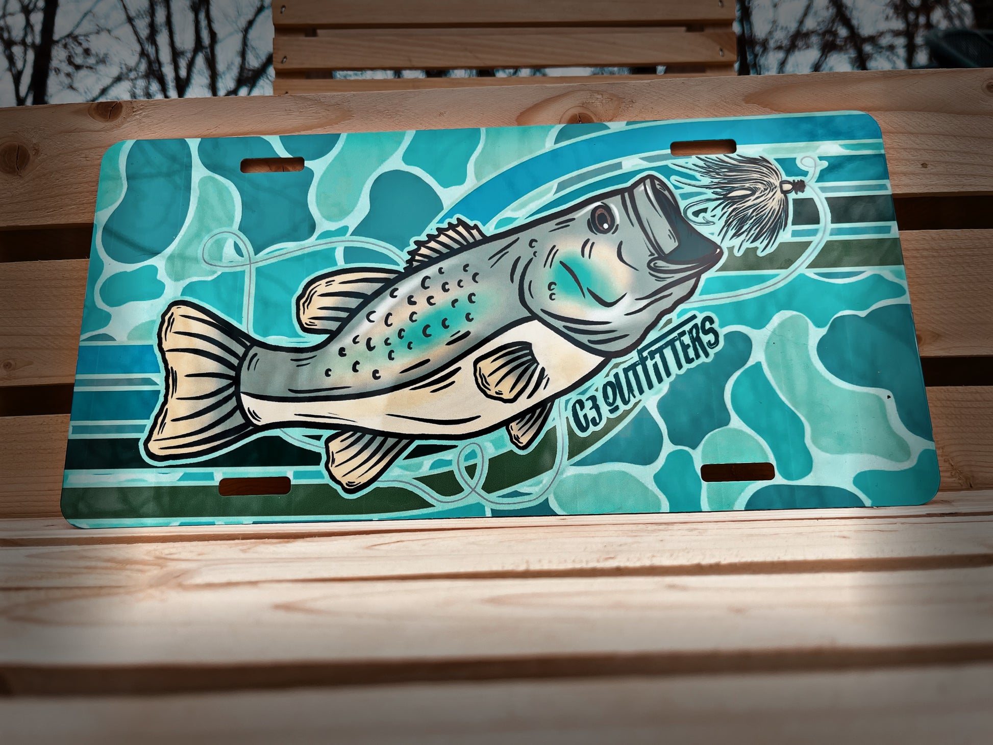 Old School Water Camo Bass Retro License Plate
